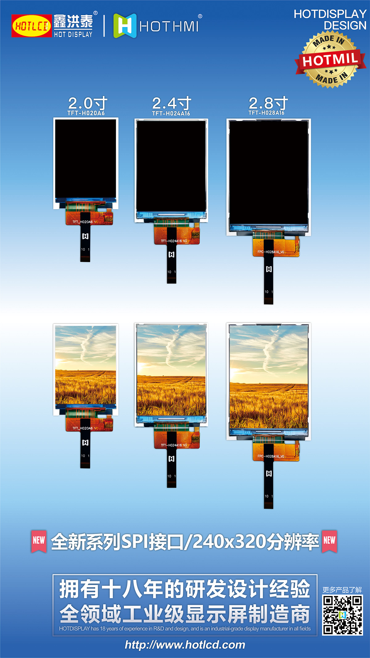 HOTLCD創(chuàng)立于2004年,位于全球電子產(chǎn)業(yè)鏈配套最快最全的粵港澳大灣區(qū),是一家專業(yè)從事新一代信息產(chǎn)業(yè)之LCD液晶顯示模組、TFT顯示屏產(chǎn)品的研發(fā)、生產(chǎn)、銷售和服務(wù)的深圳市高新技術(shù)企業(yè)。